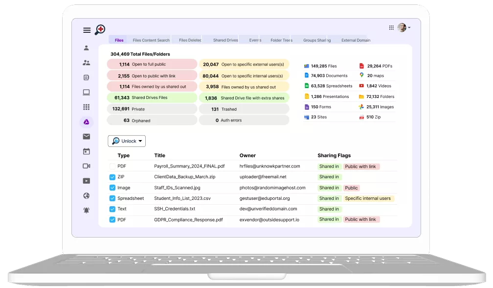 GAT started as a free tool and quickly gained traction. We added Drive sharing audits and later became the first to audit Gmail content creating, GAT+, our core auditing platform.