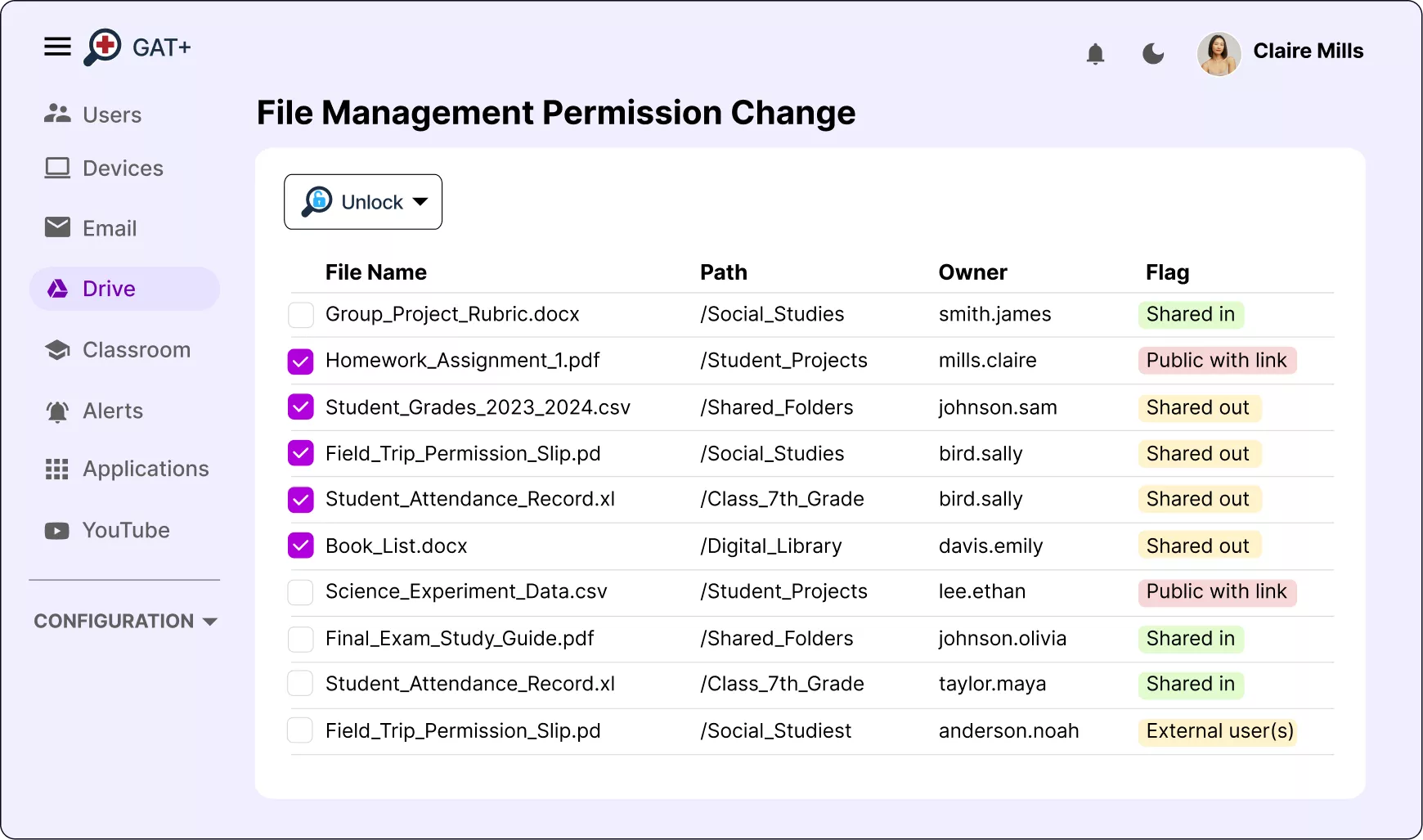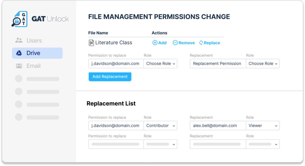 - Execute comprehensive, large-scale actions on files and folders across multiple owners in your Google Workspace. Whether changing permissions, copying, or moving files, GAT Unlock provides the flexibility you need.