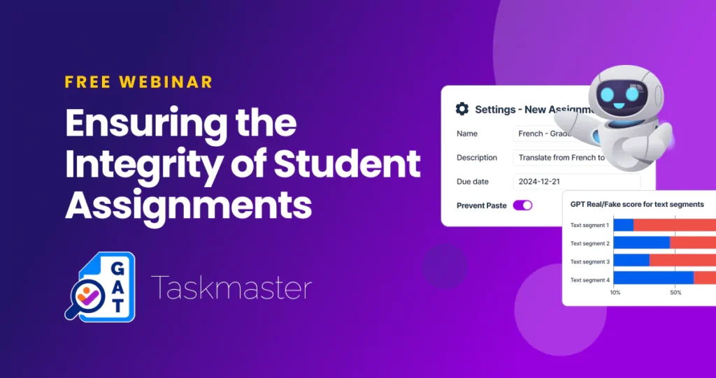 In this webinar, we showcase Taskmaster by GAT Labs — a powerful tool for promoting academic integrity. Learn how it monitors student activity during assignments, tracks typing behavior, uses AI to verify identity and detect AI-generated content, and even blocks pasting when needed to ensure fair and secure assessments