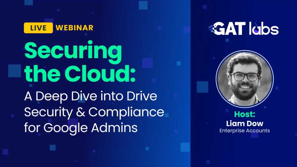 In this session, we dive into Google Drive security and compliance best practices for Google Workspace Admins. Learn how GAT Labs helps you monitor, protect, and manage data to stay secure and compliant across your organization.