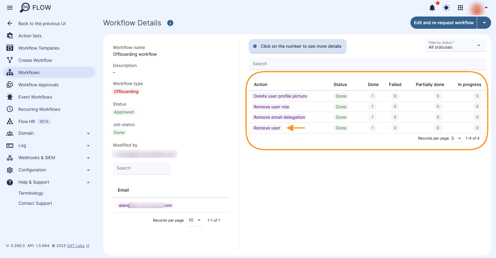 - Remove user – resulting from Offboarded process (Offboarding type of workflow)