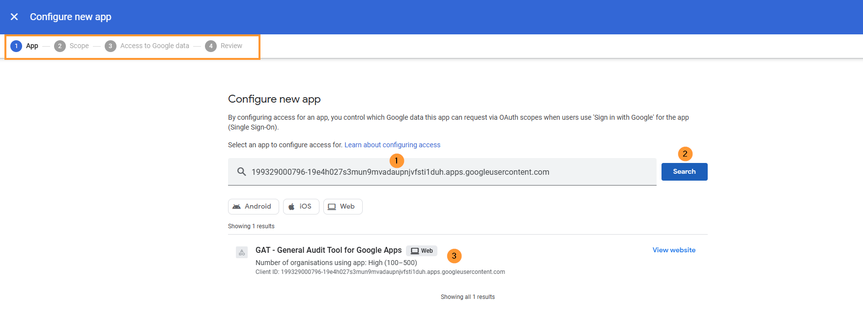IMPORTANT NOTE: As Google has deprecated its ‘Google Sites’ product, GAT cannot be granted access to it. You may see that the status is only ‘Partially Granted’ during this step. However, once you have clicked the ‘Grant access’ button, you can consider this step finished.