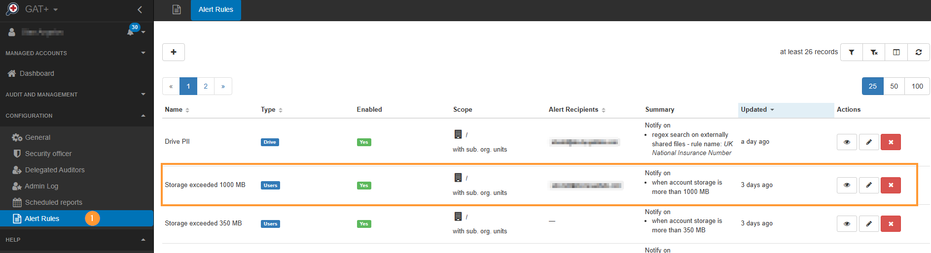 Open GAT+, navigate to Alert rules under the Configuration tab