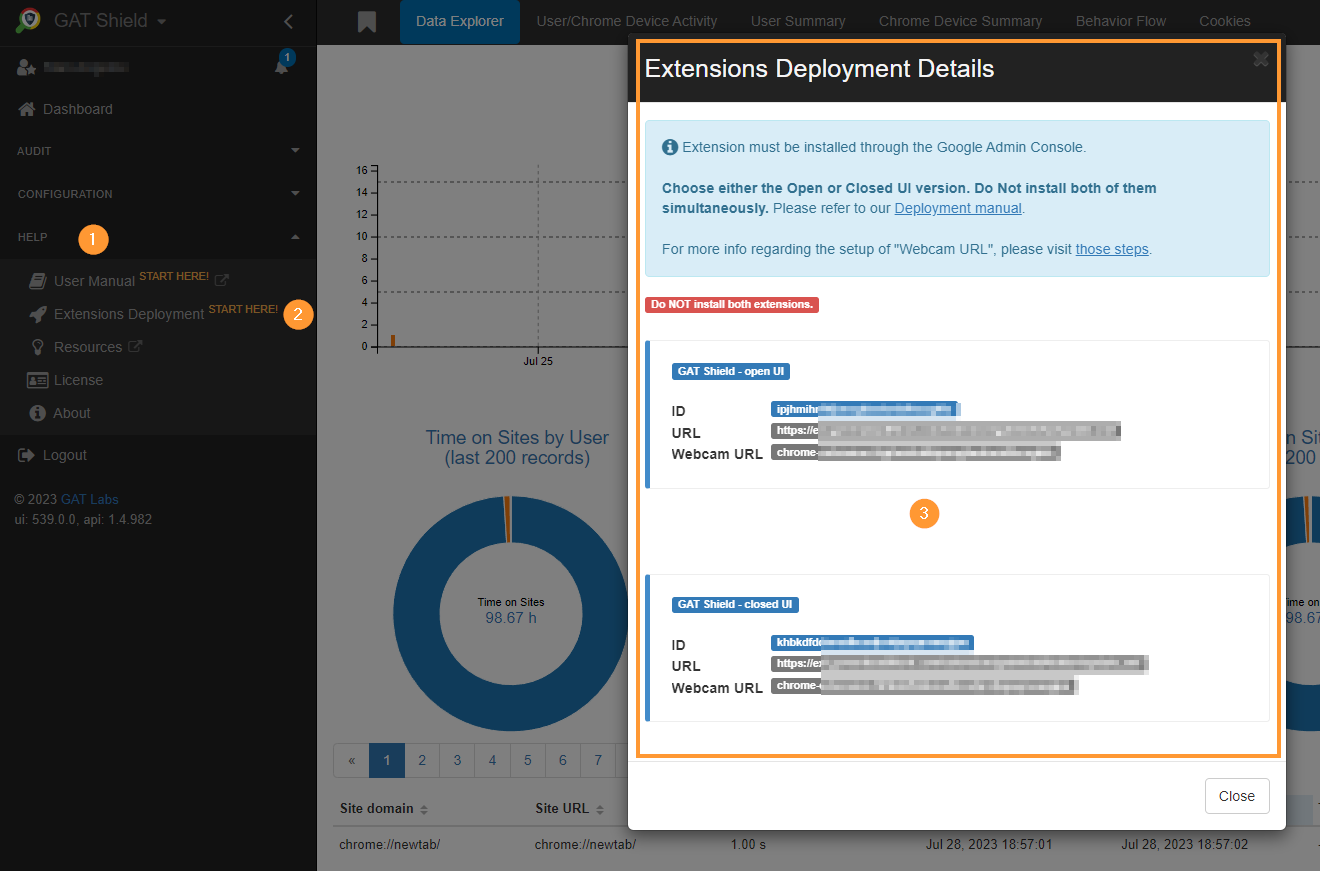 To access and view the Extension ID and URL, navigate to GAT Shield > Configuration > Extension deployment.