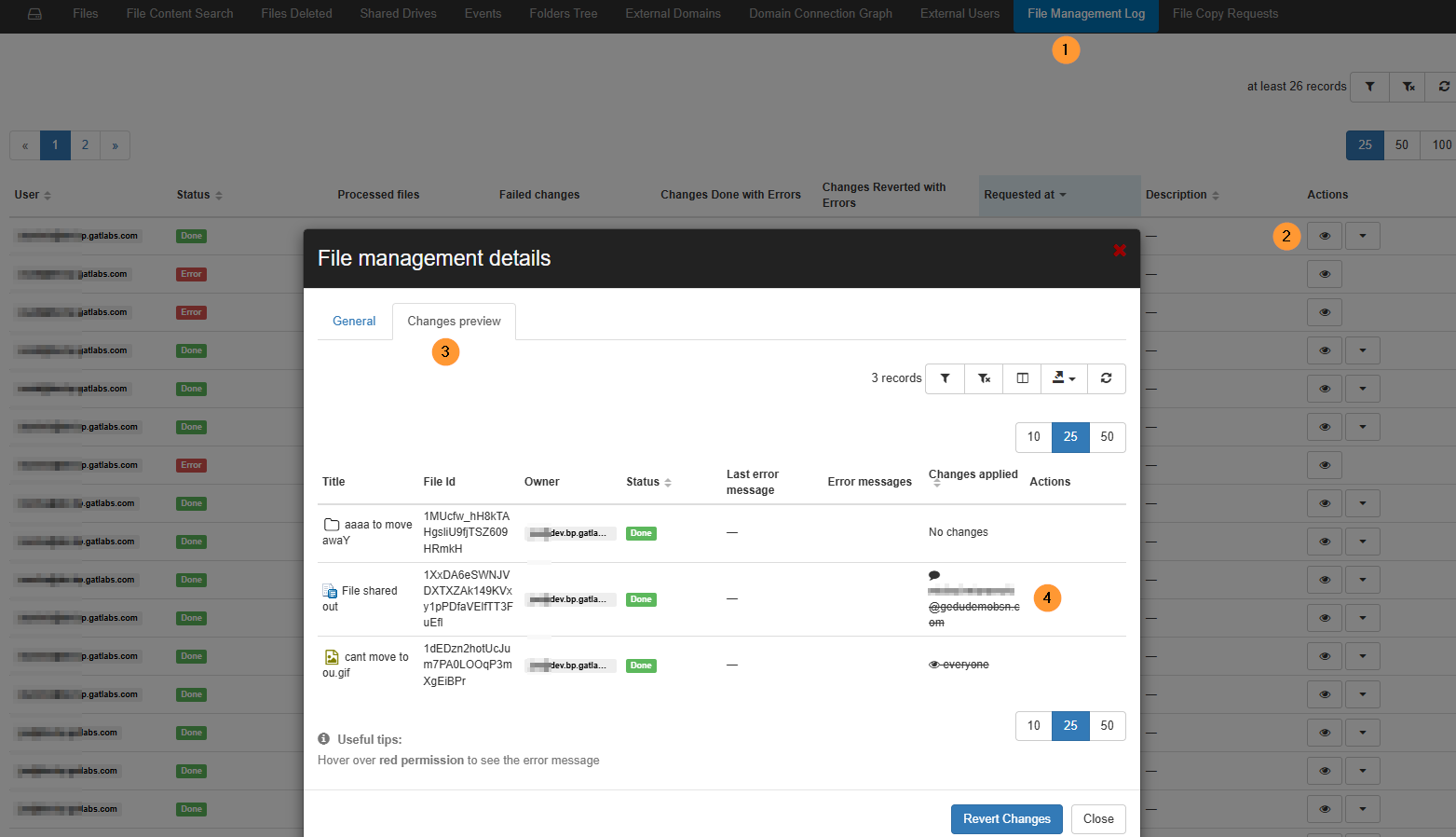 Navigate to Drive > File management log – there you can see the result of the job above.