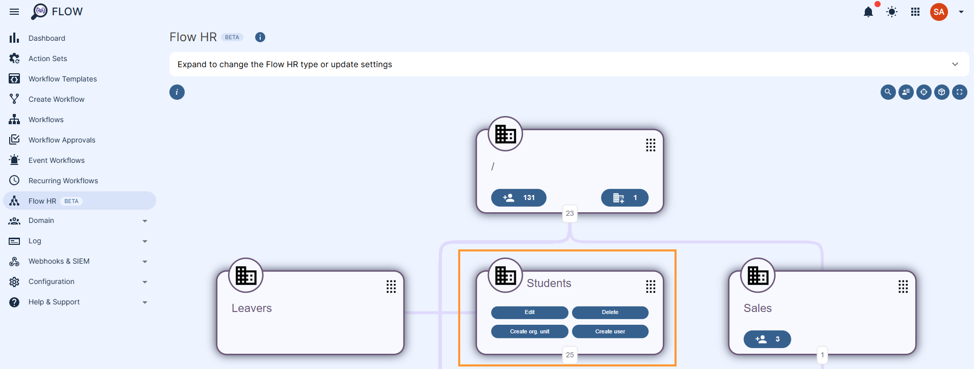 All of these flows created can now also be actioned by the movement of users on the tree chart.
